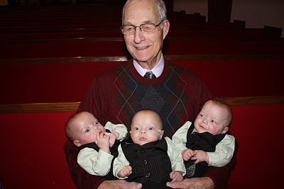We had the boys passed around from lap to lap. Here is Great-Grandpa Dickey with the boys (Alex, Ethan, Grant).
